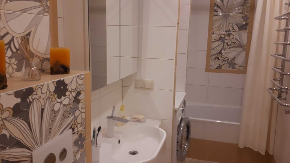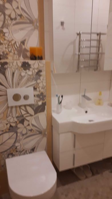 Пропонується в оренду простора, охайна, сучасна квартира в курортному містечку Ворзель. ЖК розташований в парковій частині, вул Декабристів, 10, зі своєю закритою теріторією, біля озера. Квартира з якісним ремонтом, індивідуальним опаленням. Загальна площа 60 кв м, має вітальню та спальню, простору кухню, гардеробну кімнату, просторий санвузол, в якому є ванна і окрема душова. В квартирі є все необхідне для комфортного проживання: меблі, вбудована кухня, побутова техніка: кондиціонер, пральна машина- автомат, посудомийна машина, холодильник, телевізор. Лічильники на все, комунальні не великі. На теріторії комплексу є продовольчі магазини, аптека. Поруч зупинки транспорту, готель- курорт Шкіпер. Ціна 15000 грн + комунальні Комісія 50 % 5