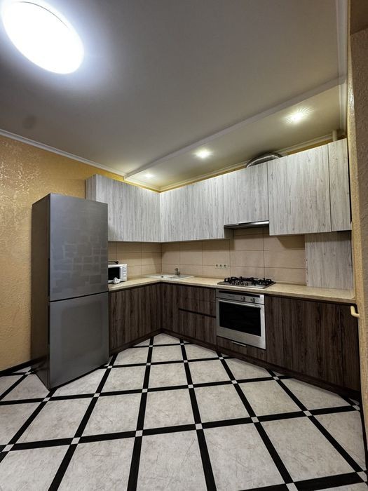 Оренда просторої квартири з побутовою технікою та меблями, центр міста, по вул. Височана 18 ( Містечко Центральне) • 3 поверх з 12; • новобудова; • індивідуальне газове опалення; • двоконтурний котел; • ремонт; • ліфт; • лоджія; У квартирі • плита з духовкою; • витяжка; • холодильник; • пральна машина; Вартість оренди 350 $/міс + КП
