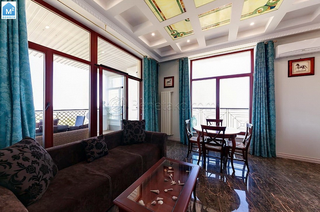 Код: 1511. ПОМЕСЯЧНО АРЕНДА АКТУАЛЬНА В ПЕРИОД С 01.09 ДО 30.05 (в летний сезон сдается посуточно от 2-х суток, раннее бронирование от 5-и суток и более). Просторные апартаменты в Ж/К «Аркадийский дворец», ул. Аркадийское плато 5/3, 4/12 эт. дома, общая площадь 150 кв. м. Две отдельные спальни, гостиная мягкой мебелью, отдельная кухня. Со спальни и гостиной выход на большую террасу с летней мебелью и шикарным видом на море. Два санузла - душевая кабина и угловая ванна. Закрытая охраняемая территория, паркинг, Ж/К находится прямо над пляжем «Аркадия» (около 150-ти метров от моря). Самый популярный курортный район и центр развлечений Одессы, район пляжей, ночных клубов, аттракционов, кафе и ресторанов. Возможно проживание с детьми и животными. Аренда от 3-х месяцев и более. Стоимость может варьироваться в зависимости от срока аренды. Перед просмотром уточните наличие и детали по VIBER, WHATSAPP или TELEGRAM, указав «КОД» из объявления. КОМИССИЯ ЗА УСЛУГИ РИЭЛТОРА - 50% от месячной аренды (разовая оплата при оформлении договора).