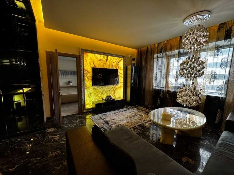 Сдаётся в аренду роскошная 2-комнатная квартира с дизайнерским ремонтом, выполненным с применением самых дорогих и премиальных материалов. Квартира находится на 3-м этаже 24-этажного дома и сдается впервые после дорогого дизайнерского ремонта в современном стиле. В интерьере использованы эксклюзивные материалы: в гостиной установлен диван из натуральной страусиной кожи, кухня полностью укомплектована мебелью и техникой от итальянских производителей, отделка стен и пола выполнена из натурального мрамора. В квартире предусмотрено всё для комфортной жизни: встроенные шкафы, тёплые полы, система кондиционирования и климат-контроля, установлена премиальная бытовая техника. Просторные комнаты, высокие потолки и продуманная планировка создают атмосферу уюта и элегантности. Дом расположен на закрытой, охраняемой территории с круглосуточным видеонаблюдением. Презентабельный подъезд с консьержем, подземный паркинг и развитая инфраструктура - всё это делает проживание здесь максимально комфортным. Рядом находятся супермаркеты, рестораны, спортзалы, станции метро и деловой центр города. + доступны 2 паркоместа в подземном паркинге по 150$