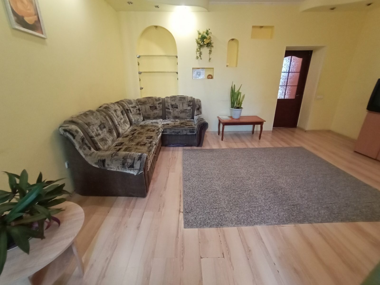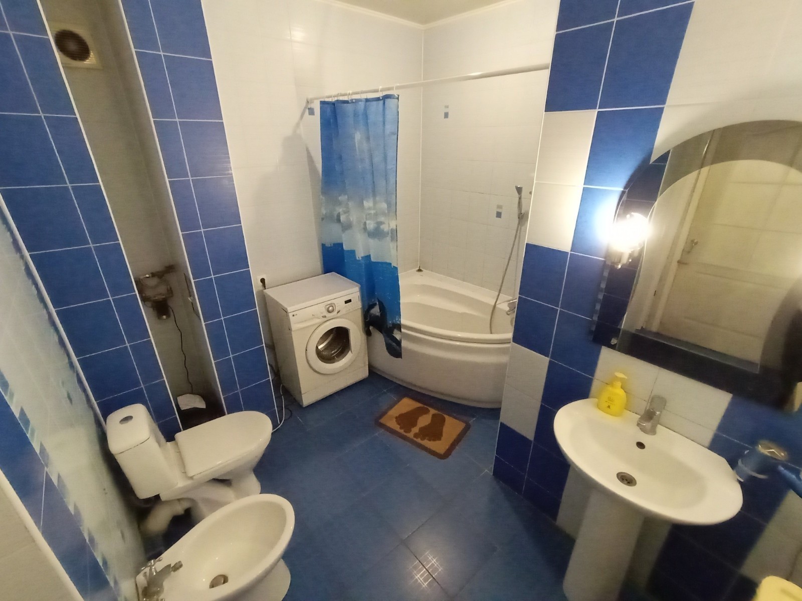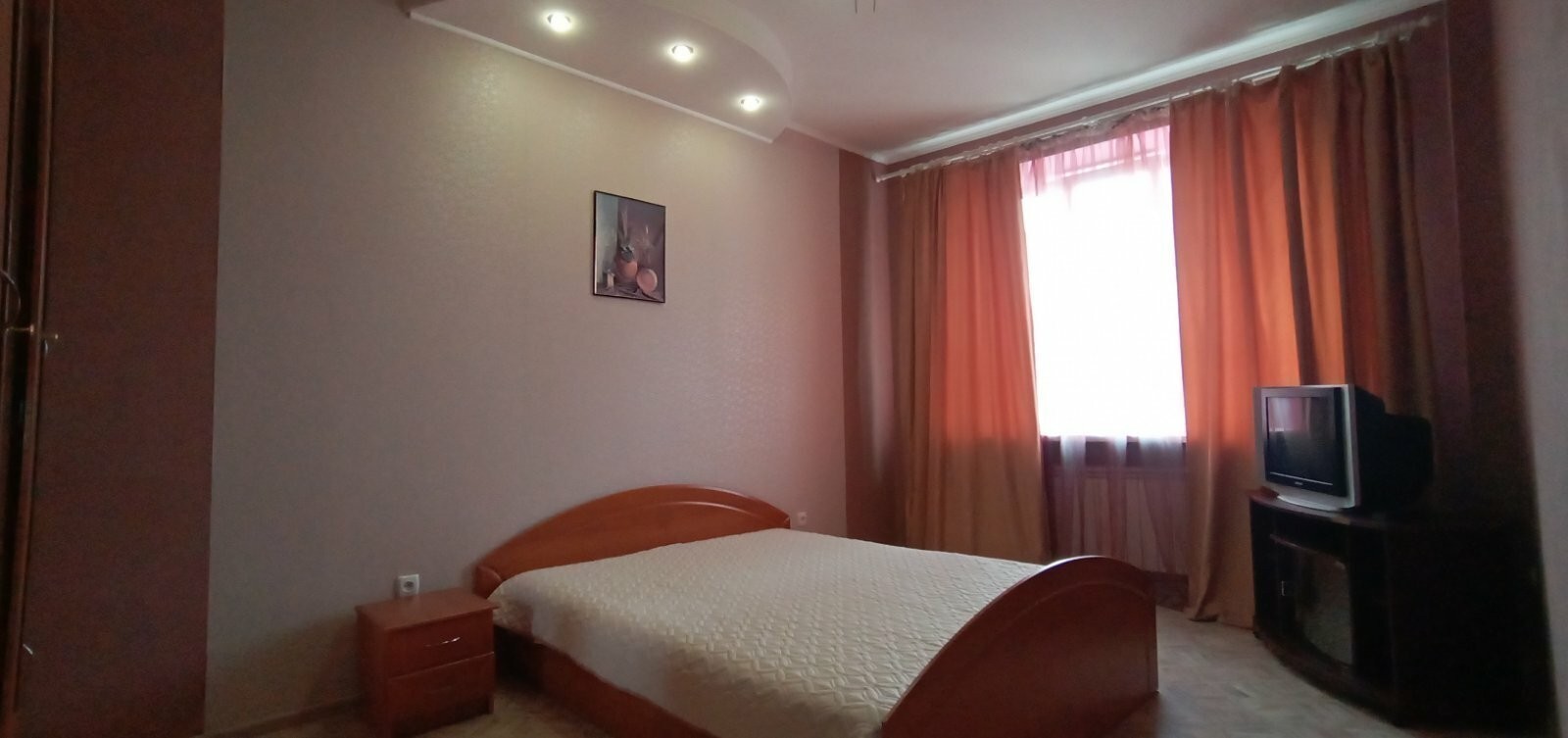Условия: высокие двухуровневые потолки, с точечной подсветкой, ниши, декоративная штукатурка на стенах. Металлопластиковые окна. Для курящих имеется балкон с видом во двор. 2 ТВ (кабельное), DVD c USB, CD-player, Холодильник, микроволновая печь, эл. чайник, встроенная газовая печь, газовая колонка для горячей воды, Угловая ванна, унитаз, биде, рукомойник с зеркалом и подсветкой. Стиральная машина-автомат, фен.